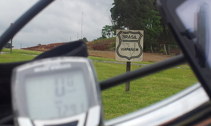 Pouco adiante, uma placa chamou-me a atenção. Ela tinha os dizeres “Brasil – Viapanam”.